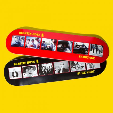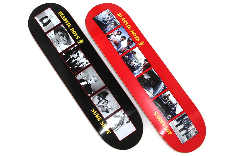 写真左から、Beastie Boys Sure Shot Deck(8.125×31.625 / 8.25×31.625)、Beastie Boys Sabotage Deck(8×31.875 / 8.25×31.625)。ともに¥10,800