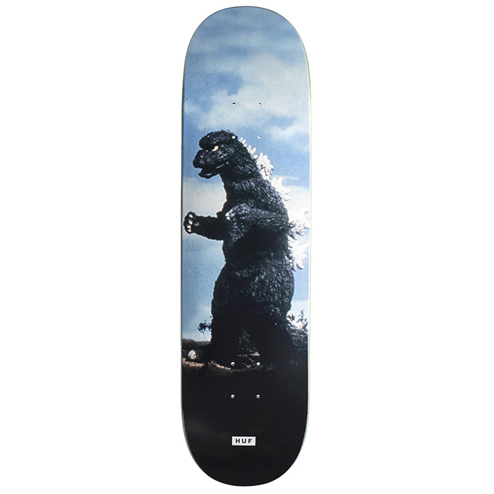 1954年に登場以来、ゲームやコミック、小説などさまざまなカルチャーに影響を与えるゴジラがアパレルやデッキにデザイン。