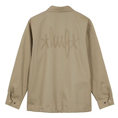 フロントの左胸とバックにHUFのロゴをプリントしたコーチジャケット。ボディと同色のプリントがさり気なくてクール。各色ともに¥15,984