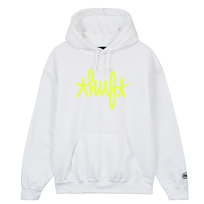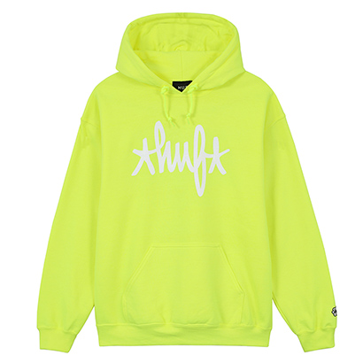 HAZEが描いたHUFのロゴマークをフィーチャーした4アイテムは存在感抜群。蛍光グリーンもストリートで映える!!