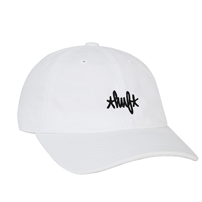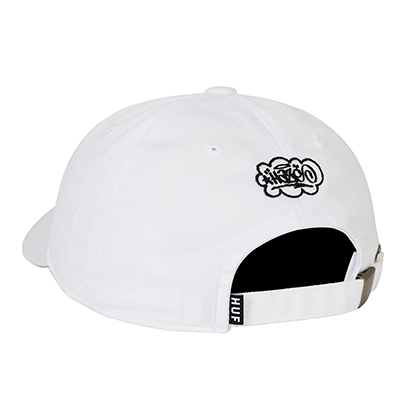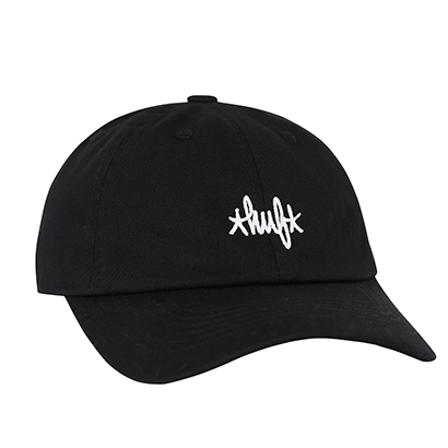 フロントにHUFロゴ刺しゅうを施したストラップバックキャップ。バックにはHAZEのロゴ刺繍を配置。各色ともに¥6,480