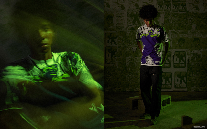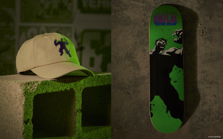 緑の巨人、超人ハルクの60周年を讃えるカプセルコレクションとして、フーディやTee、ソックスに限定デッキなどをリリース。