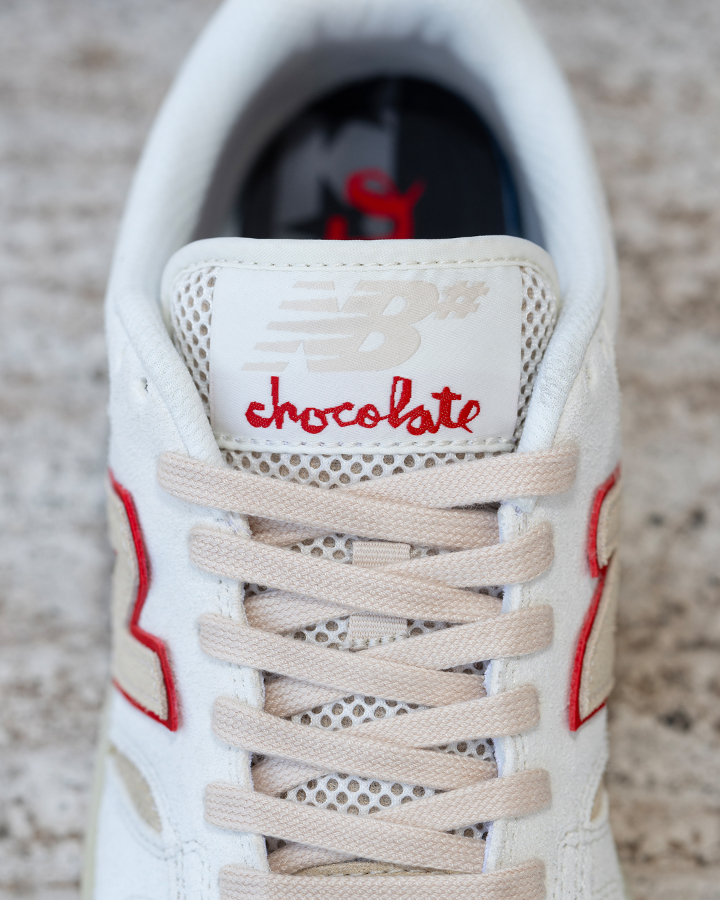 ホワイトをベースにレッドの差し色が映えるChocolateとのコラボモデル。オリジナルのデザインを継承しながらアッパーの耐久性を向上したほか、FuelCellのミッドソールやABZORBのインソールを搭載。アウトソールに施されたエヴァン・ヒーコックスのドリップアートにグッと来るスケーターも多いハズ。スペシャルシューズボックス仕様でエクストラシューレース、エクストラインソール、メッシュシューズバックが付属。NM480SWT ¥24,200