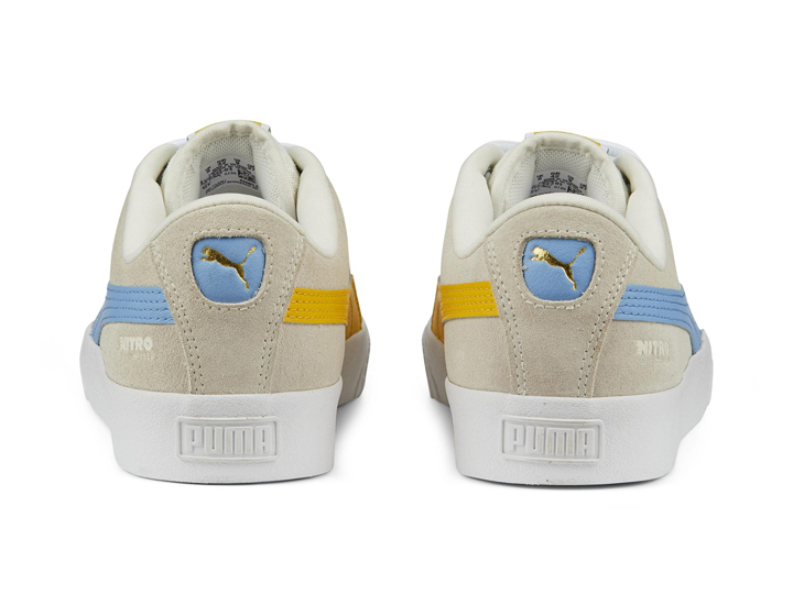 アルゼンチン国旗をイメージさせるホワイト、ライトブルー、イエローの配色を取り入れたモデル。Suede Skate Nitro Argentina マシュマロ¥10,450(12月17日発売)