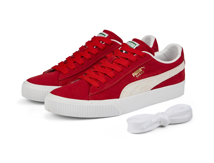 PUMAの人気定番モデル、Suedeにボードフィールに優れたヴァルカナイズドソールを採用。遊び心のある豊富なカラバリのなかから、スタイルに合う1足をどうぞ。Suede Vulc ハイリスク レッド¥9,350(10月22日発売)