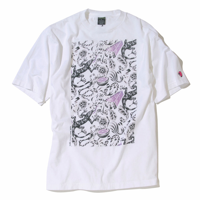 ・落ち着いた色味と抽象的な独特の世界観が特徴的なグラフィックが配置されたPOOLSIDE T-SHIRTS ¥6,090