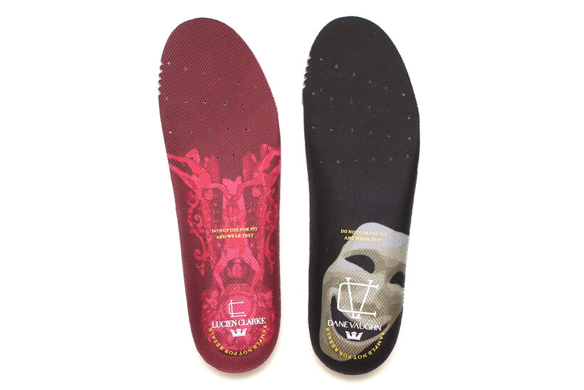 シューズの内側には水玉模様のリフレクタープリントが配されておりナイトスケーティングにも最適。ヒールカウンターにはロンドンを代表するクルー、PWBC(Palace Wayward Boys Choir)の文字が刻まれている。