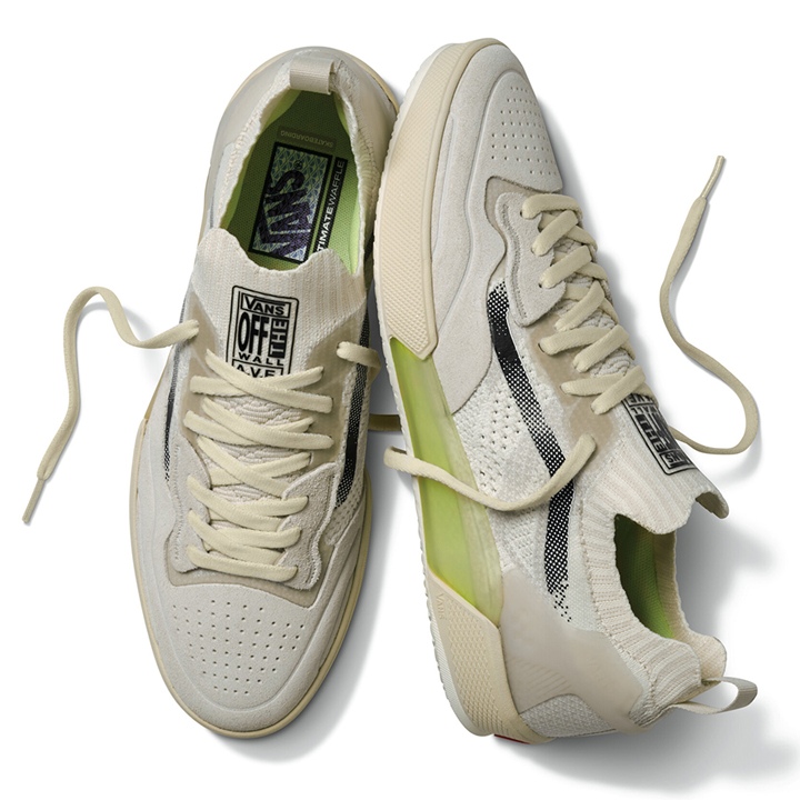 ニット素材のアッパー、ステッチを使わず熱圧着したトゥに加え、衝撃吸収性に優れるUltraCush™インソール&グリップ力に優れるSickStick™ラバーアウトソールを組み合わせた UltimateWaffle™構造のソールなど、AVEにふさわしいハイパフォーマンスシューズになっている。