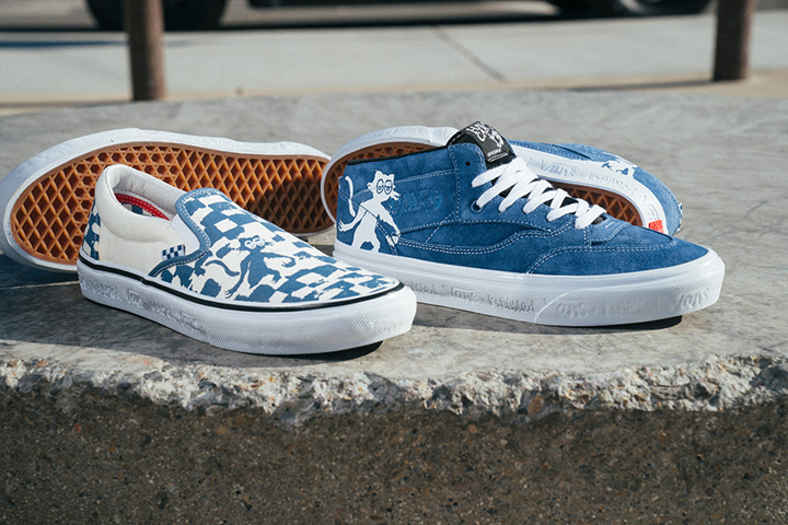 ブルーのHalf CabとSlip-OnはVansのスペシャルラインであるVans Checkerboard UnionのアイテムでVans Store Harajuku、FTC TOKYO、MORTARのみで明日(2月25日)発売。