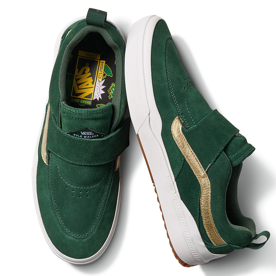 Shake Juntのブランドカラーであるグリーンとイエロー、そしてゴールドを用いたシューズとアパレルがラインナップ。