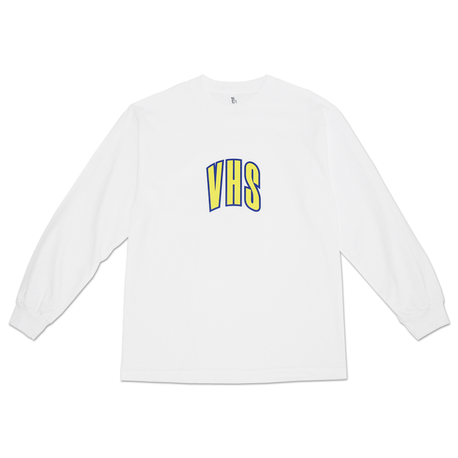 フロントにシンプルにVHSのアーチロゴを配した1枚。ボディカラーによってプリントが微妙に違うのもポイント。VHS L/S Tee 各色すべて¥6,380