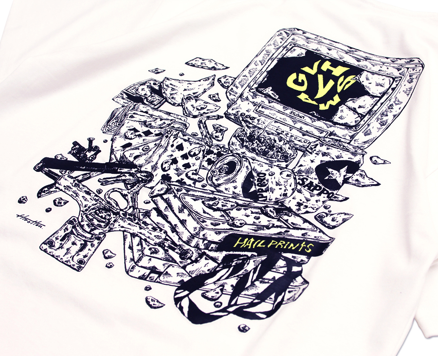 VHSMAGとHirotton、そしてスケーターが手掛けるシルクスクリーン工房のHailprintsによるトリプルネームTシャツが爆誕。