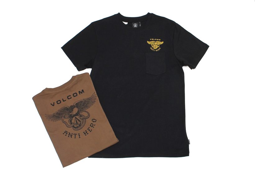 AntiheroのイーグルロゴにVolcom Stoneをフィーチャーしたキービジュアルを中心に、両ブランドの特性を活かしたソリッドなラインナップが到着。