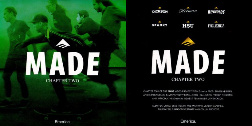 前作である『MADE Chapter 1』から約3年の沈黙を破り、Emericaの最新作『MADE Chapter 2』がついにリリース。チームに新加入したジョン・ディクソン、テクニカルからバンガーまで幅広く対応するブライアン・ハーマン、38歳で素晴らしいスケーティングを魅せたアンドリュー・レイノルズ、負傷によるブランクから復活を果たしたスパンキーことケヴィン・ロング、Chocolate移籍以来となる久々のパートを残したジェリー・スー、そして圧倒的な存在感と超人的なスキルを誇るフィギーことジャスティン・フィゲロアのパートが収録されています。さらにはブライアン・ウエストゲートやコリン・プロヴォストなど『MADE Chapter 1』で注目を集めた面々も登場。
