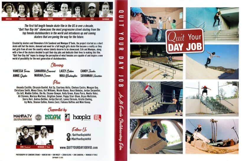 21世紀中に間に合いました。アメリカ発の女性スケーターズのみで構成されるストリートスケートビデオ、題して『Quit Your Day Job』が日本上陸。よもやまさか女性スケーターのレベルがここまでは上がっているとは世の中のオジサン勢も知らなかったはず。男の世界とされていたスケートボードの世界がネクストフェーズへと拡がったことを実感せざるを得ない内容。色眼鏡を外して、ピュアな目線でこの作品に目を通してみてください。男だとか女だとかいう不毛な線引を超えた“スケーター”の姿がそこにはあります。
