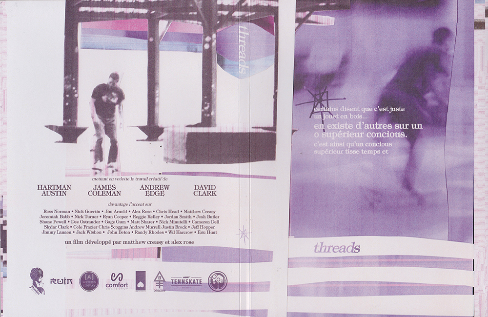 テネシー州チャタヌーガを拠点に活動するTenn SkateのPoint Four-Two制作による新作DVD作品がこちらの『Threads』。フィルマーや作り手の構成力、ジャケットやフォントにいたる細部まで、デザイン要素をきっちり固めて作られており整合性のとれた作品としてまとめられている。緩めの雰囲気とアグレッシブなストリートスケーティングとのコントラストが絶妙な、ストリートスケーターにはたまらない内容。それにしてもアメリカには、とんでもないスキルを持った無名スケーターが大勢います。