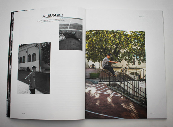 E: That was actually after we decided to do something proper. It was late 2010, I remember seeing an interview with this Norwegian publisher talking about the advantages you have of making a good printed magazine in this Internet age. So, we wanted to do something that would be kind of an argument in the favor of actually having printed magazines, not just Internet stuff. We wanted to have something that felt more timeless, not just contest results or travel stories... Something that would feel fresh if you just keep it in your shelf and look at it. We wanted to have really good paper, because I think, if you don’t print on good paper, then what’s the point? And that came also from Jorn’s background, because Jorn is a complete book nerd and he wanted to do something that was closer to a book. And we were also really inspired by SOMA, ANZEIGEBERLIN INFORMATION... and GREY was coming out at the same time as we were and had a somewhat similar aesthetic. We were also inspired by a lot of different stuff, not just by skateboard magazines, because we were into a lot of different stuff. We wanted to make something that would last. Something that looked nice, and smelled nice, something that felt new in the skateboard world and that hadn’t been done yet.