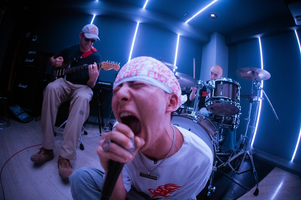 K: Skating and music are really close. The music I do, I think of it as skateboarding. So it's like a musical vibe with skateboarding as the axis. It's like releasing all the stress I accumulate from skateboarding. Skaters really love music. Everyone remembers the songs from their favorite video parts. Lots of skaters become DJs too. I was thinking it would be cool to have a band but there was no sign of that happening. But when I kept talking about "I would have liked to try being in a band" in various places, an older friend said to me, "Let's form a band. You just scream, that's all you have to do." So I was made to do vocals. That was the trigger. We played at small events without even deciding on a band name. Then drums and bass gathered and we officially started as a band. So we just added an "S" to make it JAPANESE SUPER RATS (laughs).