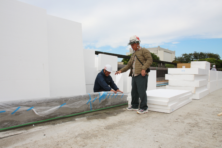 H: Once the concrete is poured, you can't change it, right? So, he confirms with me, showing videos via LINE, saying, "Is this okay?"