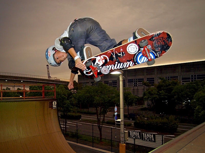 V: There used to be a skatepark called Ascot in Nanko Osaka, and I think your dad used to skate there. Did you know about the vert skaters in Osaka like Agoro (Toshiyuki Noda) and Tsutomu Miyazaki?
