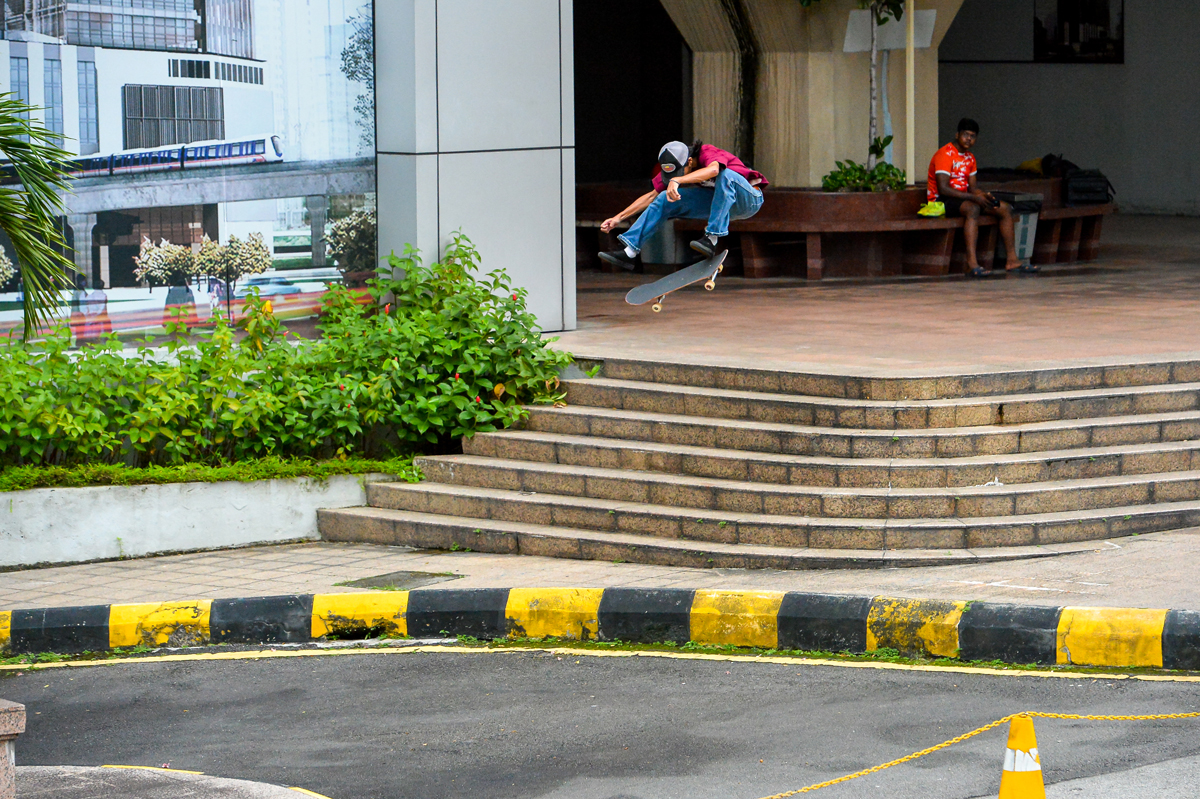 R: 3割か4割くらいかな。インドネシア以外では、シンガポール、マレーシア、タイで撮影した。楽しかった。シンガポールとマレーシアはインドネシアと比べるといいスポットがたくさんあったけど、シンガポールはストリートスケートに関してはちょっと厳しい。スポットによっては罰金を取られることもある。警察にパスポートをチェックされてヤバい瞬間もあったけど。でもどうにか大丈夫だった。シンガポールでは唾を吐いたりガムを噛んだりしても罰金を取られるんだ。オレにとってシンガポールは別世界だった(笑)。