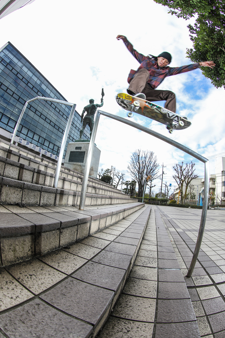 R: 元々狙っていたエンダースポットに2回撮りに行ったんですけど、メイクできず…。その後、そのスポットがなくなっちゃって。そこからまたスポットを考えるのに時間がかかって、あのスポットを見つけたときに「ここだ」ってなりました。オーリーを着ってからスタンスが合わなくてだいぶビビってたんですけど、大ちゃんも背中を押してくれたし、写真は井関さんがいて、ネギソラ(根岸 空)が固定カメラをレックしてくれていて。「もうやるしかない!」って感じでした(笑)。