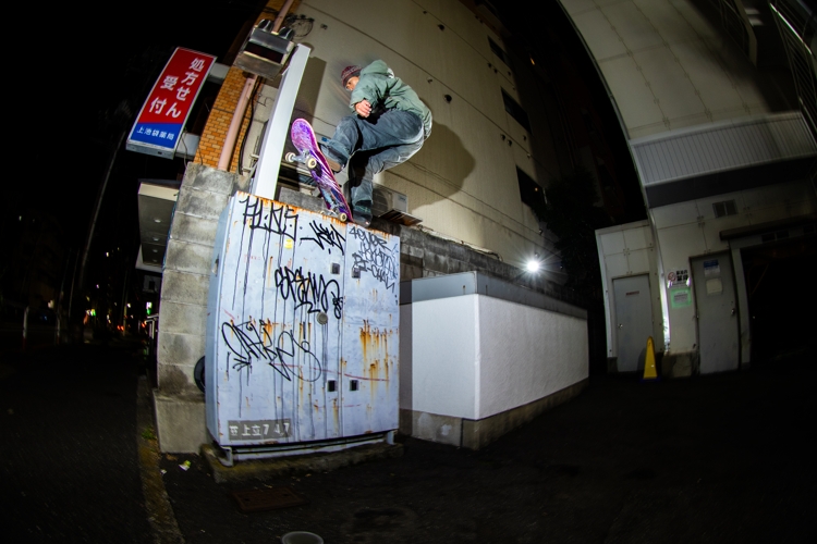 T: Yes. For the ending, we used “Zanya No Teisen” by OLEDICKFOGGY, a band with skater friends of ours, and the song really seemed to capture the feeling of that early morning sky. When I first heard it, I felt instinctively that it was perfect for the final part of the video. It sounds like the ending was crucial in connecting the theme and tone of Honogura to something uplifting and positive. Instead of just putting skate clips at the end, I included moments of everyone getting hyped, messing around, and having fun—kind of chaotic, but in a good way. It creates this contrast, where the video starts off with a darker, heavier vibe and gradually lightens up, mirroring that shift in mood. It’s like the progression from the dim, early hours to the brighter moments, both visually and emotionally.