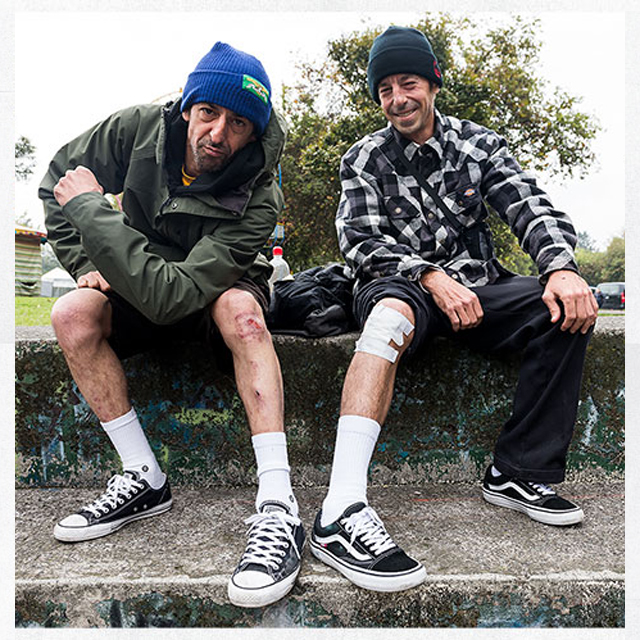 スケートボードって基本的には個人でやるものながら、時にコンビが成立することでより強力なパワーが生まれることもあります。ジェイソン・リー&クリス・パストラス、マイク・キャロル&リック・ハワード、チャド・マスカ&トム・ペニー、ジェイソン・ディル&AVE、日本の米坂淳之介&岡田 晋、チョッパー&ダルザハンサム…などがセットで語られたりするのではないでしょうか。スケートシーンに大きな影響を与え、それでもあり余るエネルギーはブランドの設立・運営にも向けられたりするなど、コンビという持ち味を活かした活動も忘れてはなりません。そして僕が個人的に最高だと思うのはピーター・ヒューイットとフランク・ガーワーのAntihero名(迷!?)コンビ。それぞれSFとSDに拠点を置きながら、ひとたび合流するとコミカルで珍妙なプレイを繰り出すこのふたりはスケート界の漫才コンビと言っても過言ではないはず。